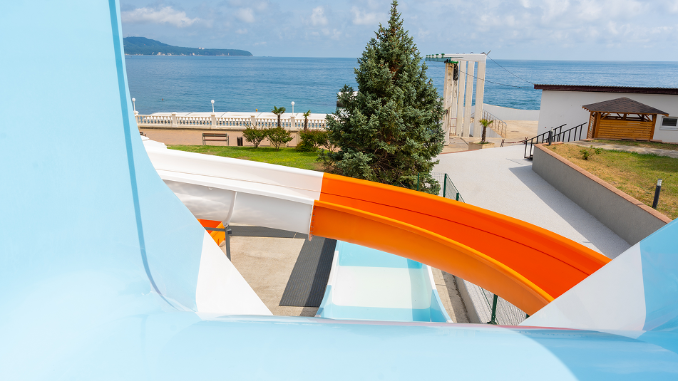 Водные аттракционы, горка для бассейна и горка с выходом в бассейн – это всегда привлекательно для гостей, особенно с маленькими детьми. Приобретая аквапарк для отелей – вы гарантируете своему заведению больший поток гостей и большую прибыль.