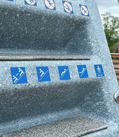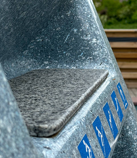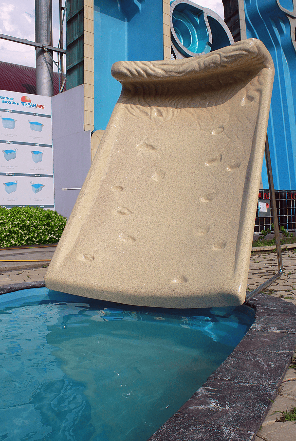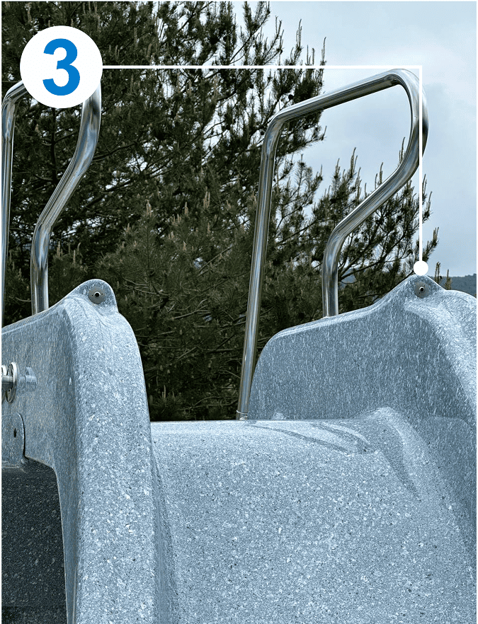 • Все элементы подачи воды, а также обратная сторона горки закрыты декоративной накладкой из стеклопластика. Подобное решение не имеет аналогов и придает эстетическую завершенность. Для оборотной стороны горки возможно выбрать любое покрытие из 17 цветов коллекции FRANMER.