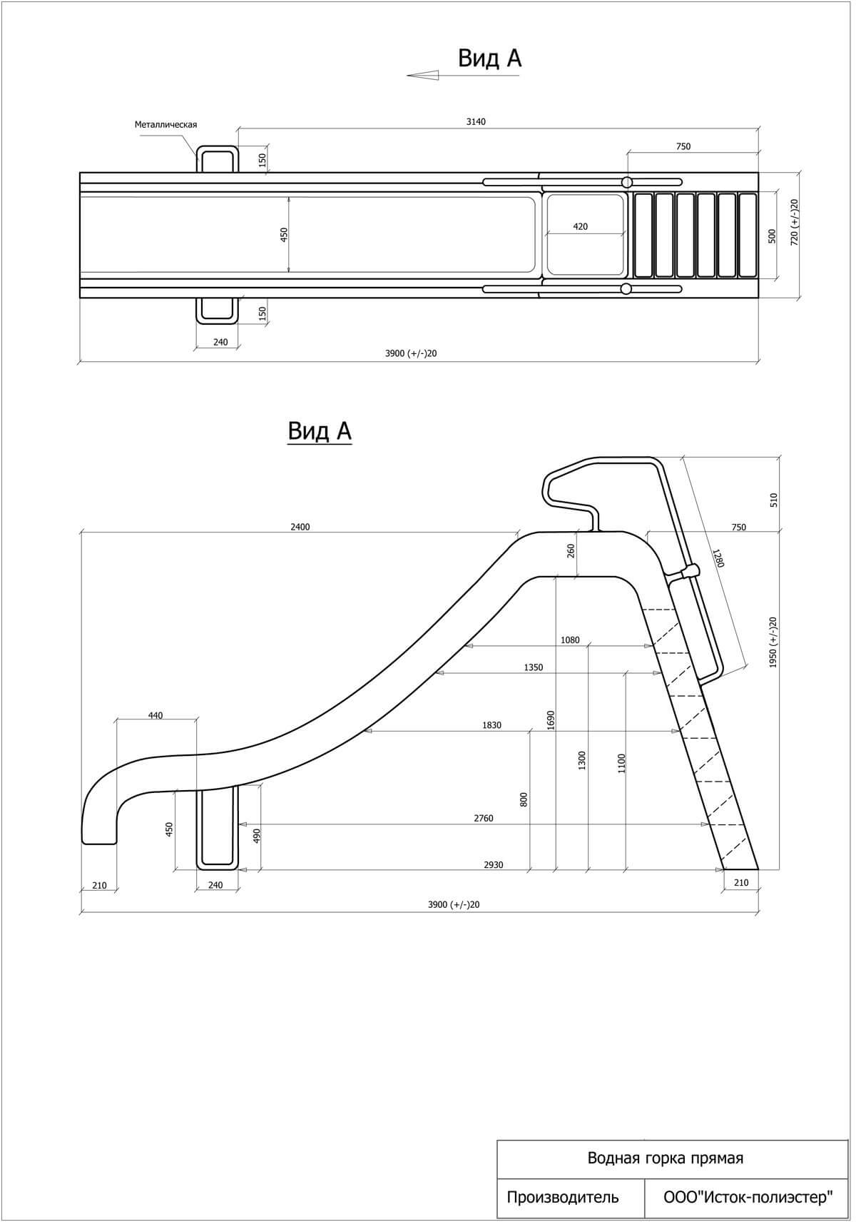 • Водная горка изготовлена из стеклопластика;