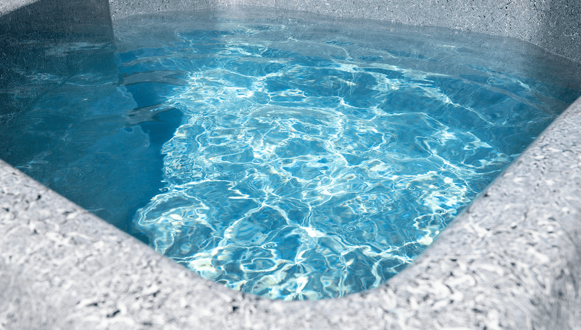 Благородный, свежий и многогранный цвет покрытия. Его особенность в множестве оттенков – вода в бассейне с покрытием Морайра будет выглядеть по-разному в зависимости от освещения.